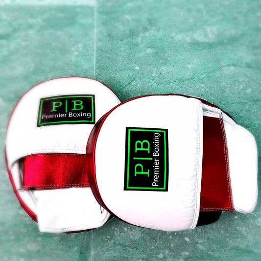 Custom made boxing punch mitts : Red & white with name Embriodery .